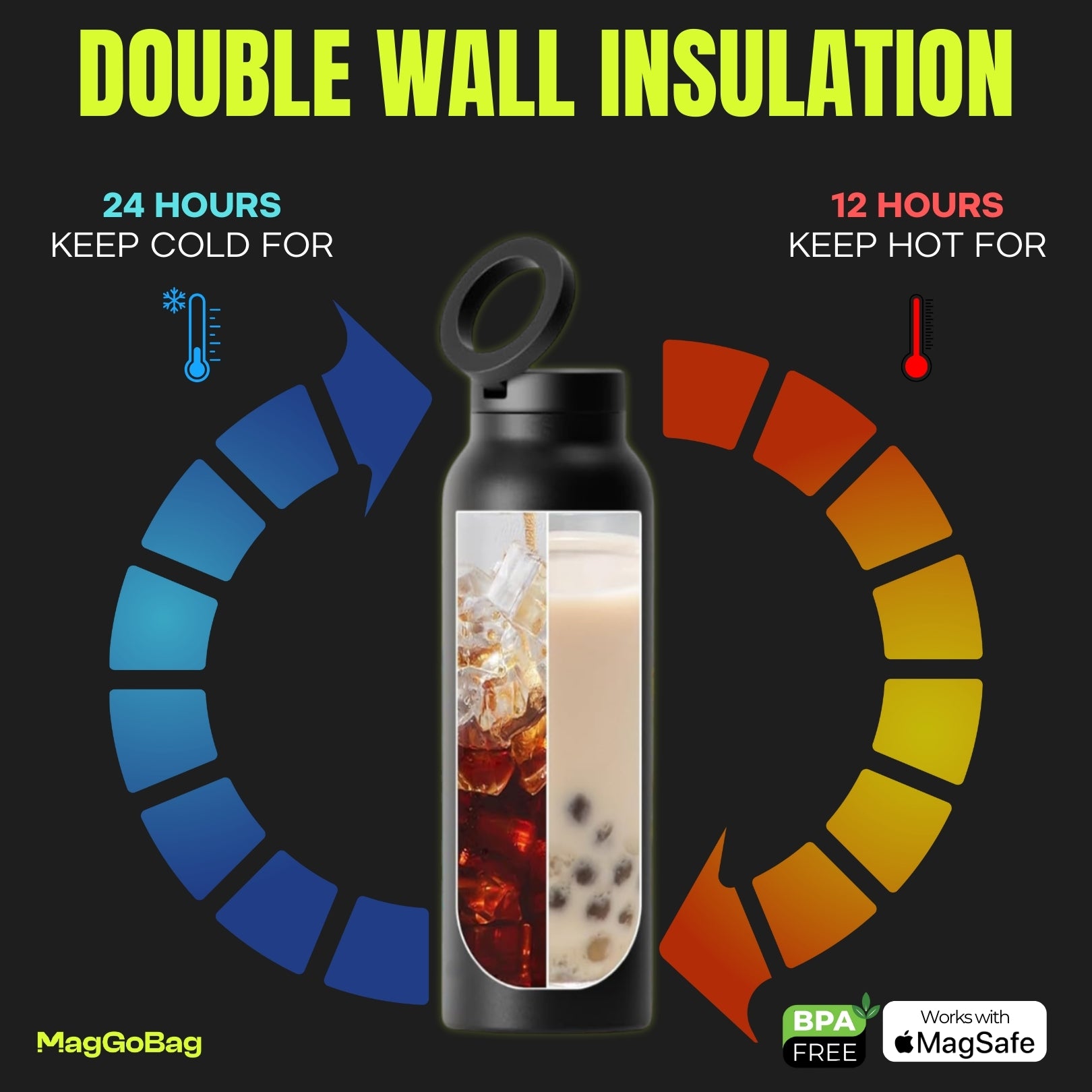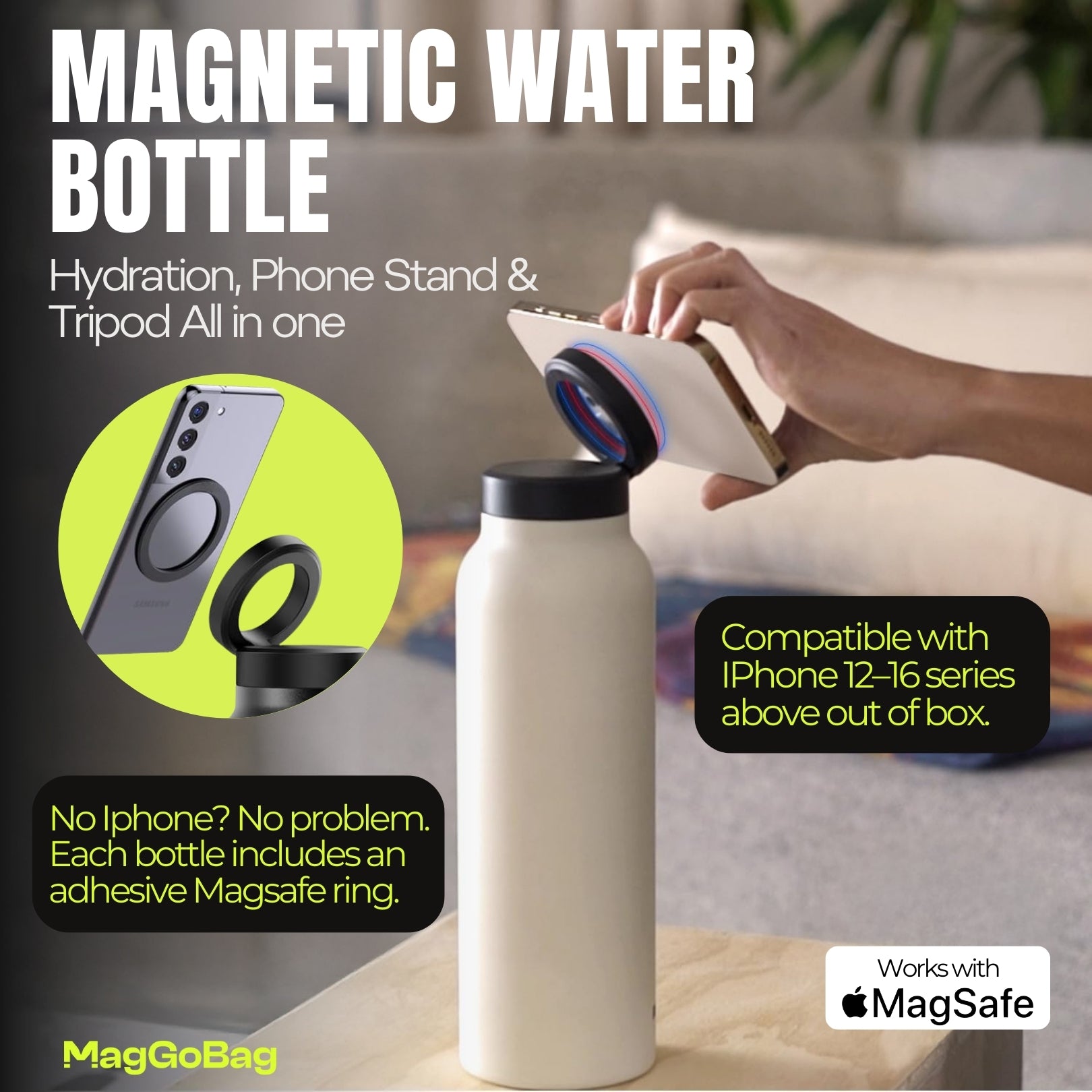 The MagGoBag™ Water Bottle keeps you hydrated while adding smart convenience. It features a built-in magnetic ring mount that securely holds your phone, perfect for workouts, video calls, or streaming content hands-free.